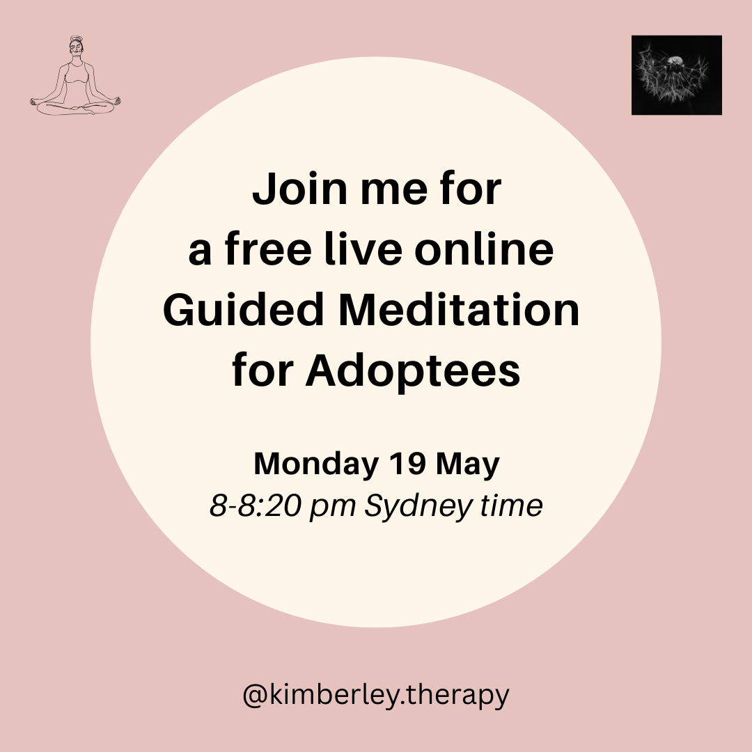 I’ll be hosting a 20-minute guided meditation online via zoom this Friday, 25 April at 9am Sydney time (please check your local time zone) for adopted people only. All adoptees are welcome - intercountry and - from wherever you are in the world.
